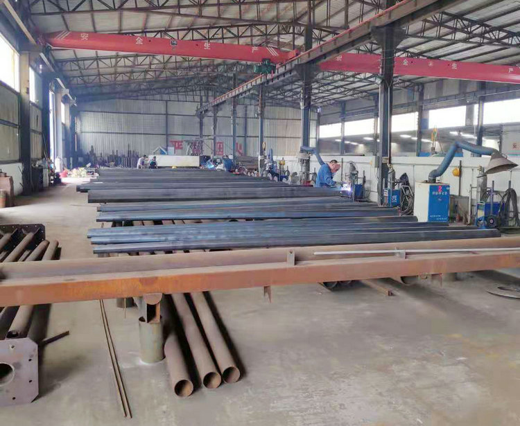 监控杆基础的混凝土浇注面平整度小于5mm/m尽量保持立杆预埋件水平。预埋件法兰盘低出周围地面20~30 mm,再用C25细石砼把加强肋盖住,以防止积水;杆旁、控制箱旁、电缆拐弯处、电缆管直线长度超过50米时或两端电缆管不在同一平面相距100mm以上时,一定要设置手孔井。手孔井的内围尺寸要求为500(长)×500(宽)×600(深)MM,用砾石铺层作为渗水用;手孔井四壁一定要抹水泥沙浆。控制箱由设备厂家根据所需容量配备,外壳采用品质好冷轧钢板壁厚不小于1.2mm外表喷室外塑粉并做好防水防盗及散热。结构用钢不得影响材料和机械性能的裂纹、分层、重皮、夹渣等缺陷麻点或划痕的深度不得大于钢材厚度负公差的1/2,且不应大于0.5mm。